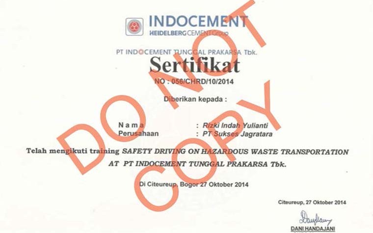 Sertifikat Training Safety Driving On Hazardous Waste Transpotastion |