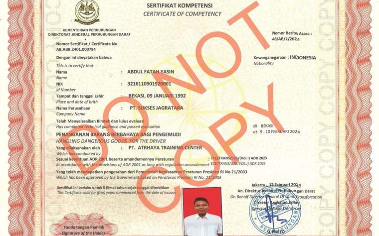Sertifikat Kompetensi LB3 KemeNhub DIrJen Perhubungan Darat |